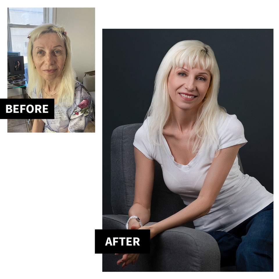 Veronica was superb. I am not at all comfortable in front of a camera and as I get older, it seems worse. I’m so self-conscious of all my flaws, I can’t relax. Veronica made the whole process easy, smooth, and comfortable. She sent all kinds of tips for getting ready for the shoot, wardrobe selection etc. Then we had a wardrobe review video call where she helped edit my wardrobe choices. Finally, on the shoot day, the time in the studio, from hair, make-up, and wardrobe to the actual session itself, went by so quickly, I actually had a lot of fun. I didn’t want it to end.